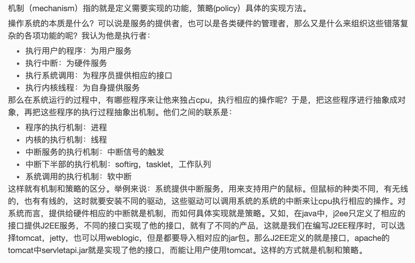 <3>.Linux内核提供机制而不是策略,系统调用是一种策略 (错)