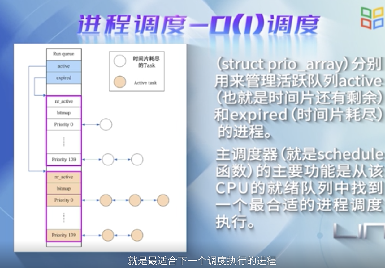 O(1)调度: 将单链表变为多链表来实现,从O(n)降低到了O(1)