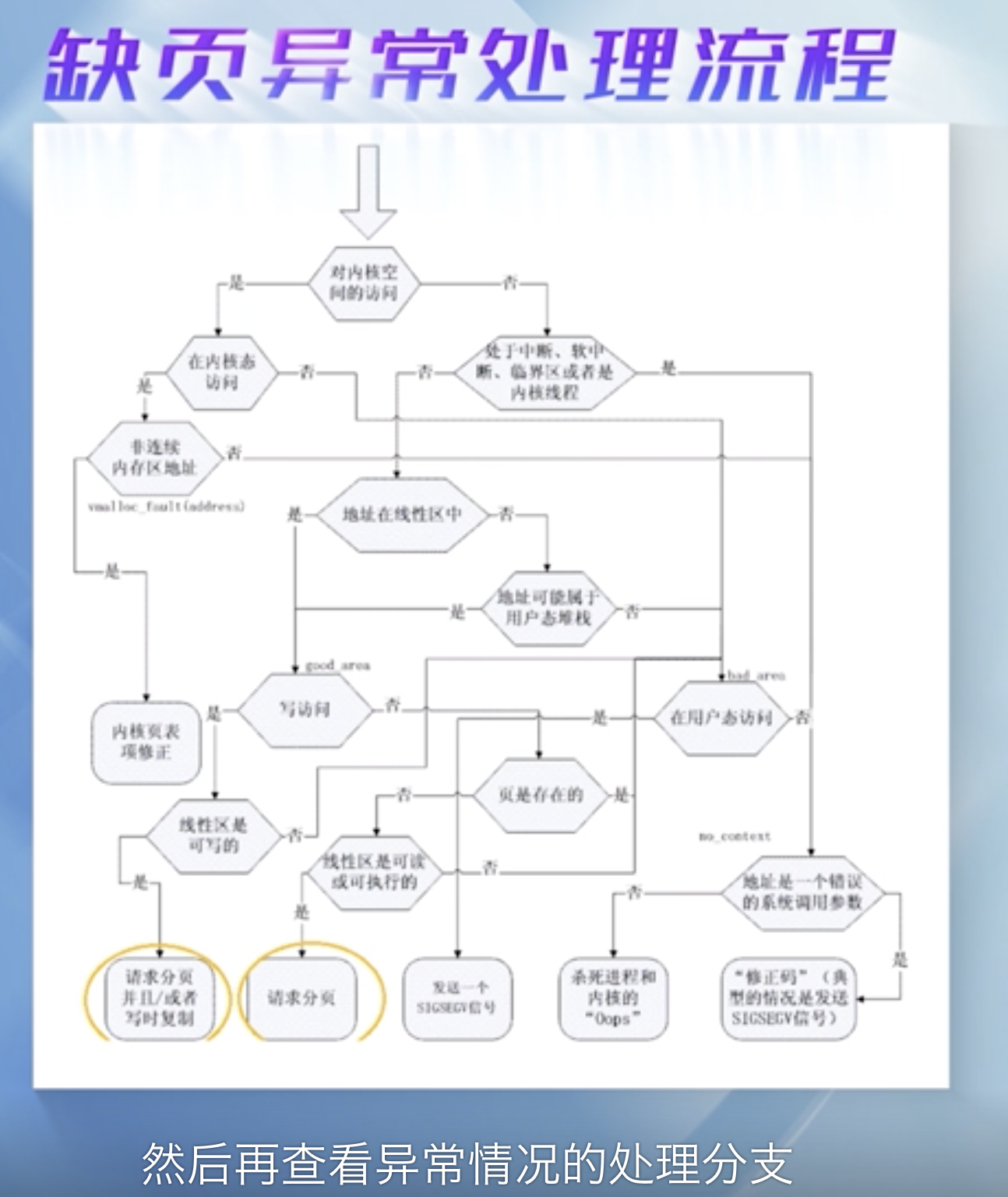 如果是一个真正的缺页引起的异常,而且有合法的权限,这时会进入到缺页异常处理程序