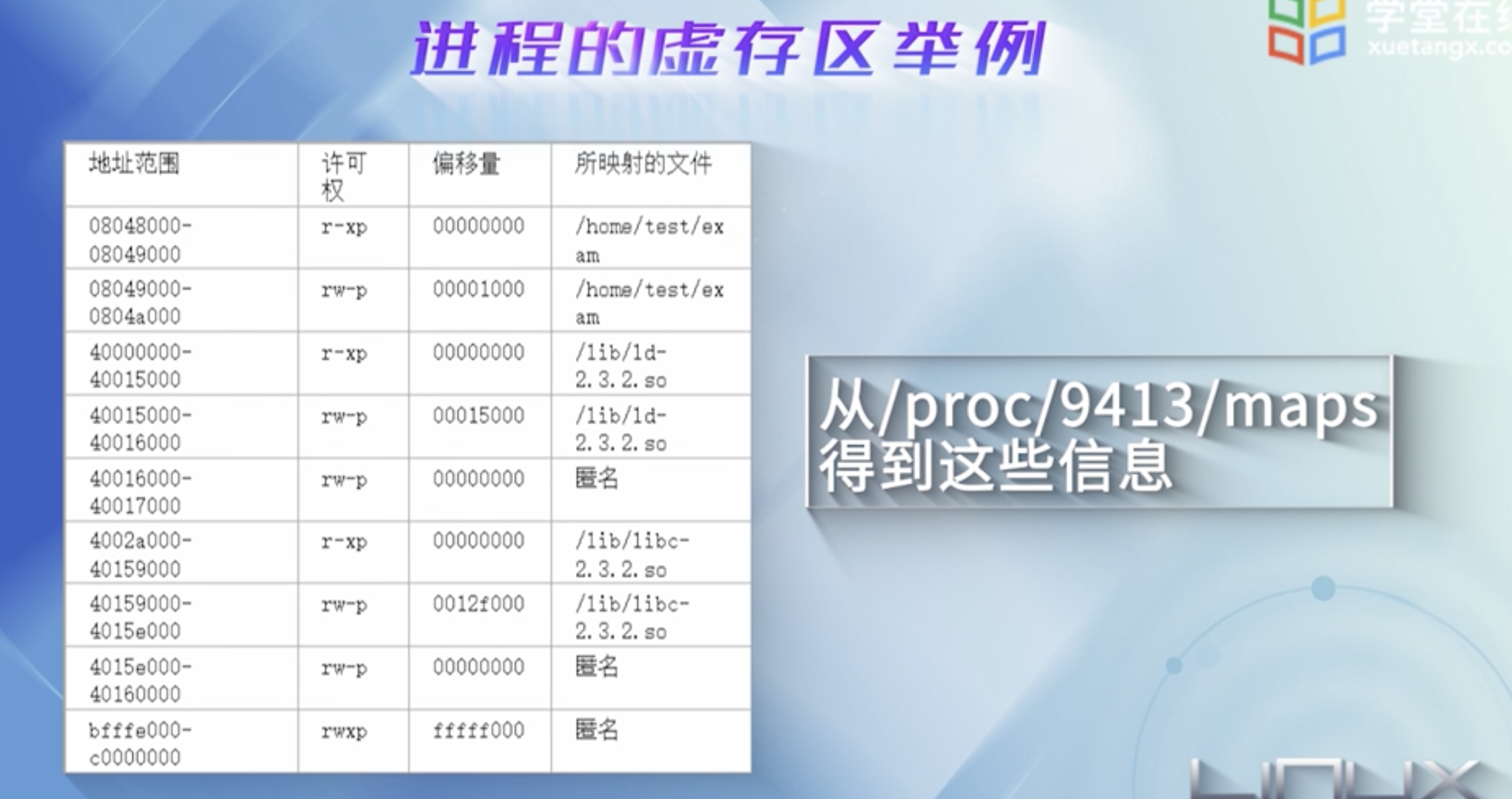上图显示了该进程 各个区的 起始地址