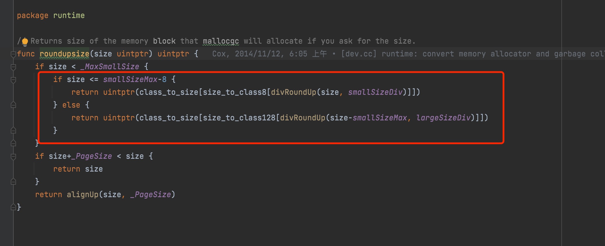 • 结合 mallocgc 流程中,对内存分配单元 mspan 的等级制度,推算得到实际需要申请的内存空间大小