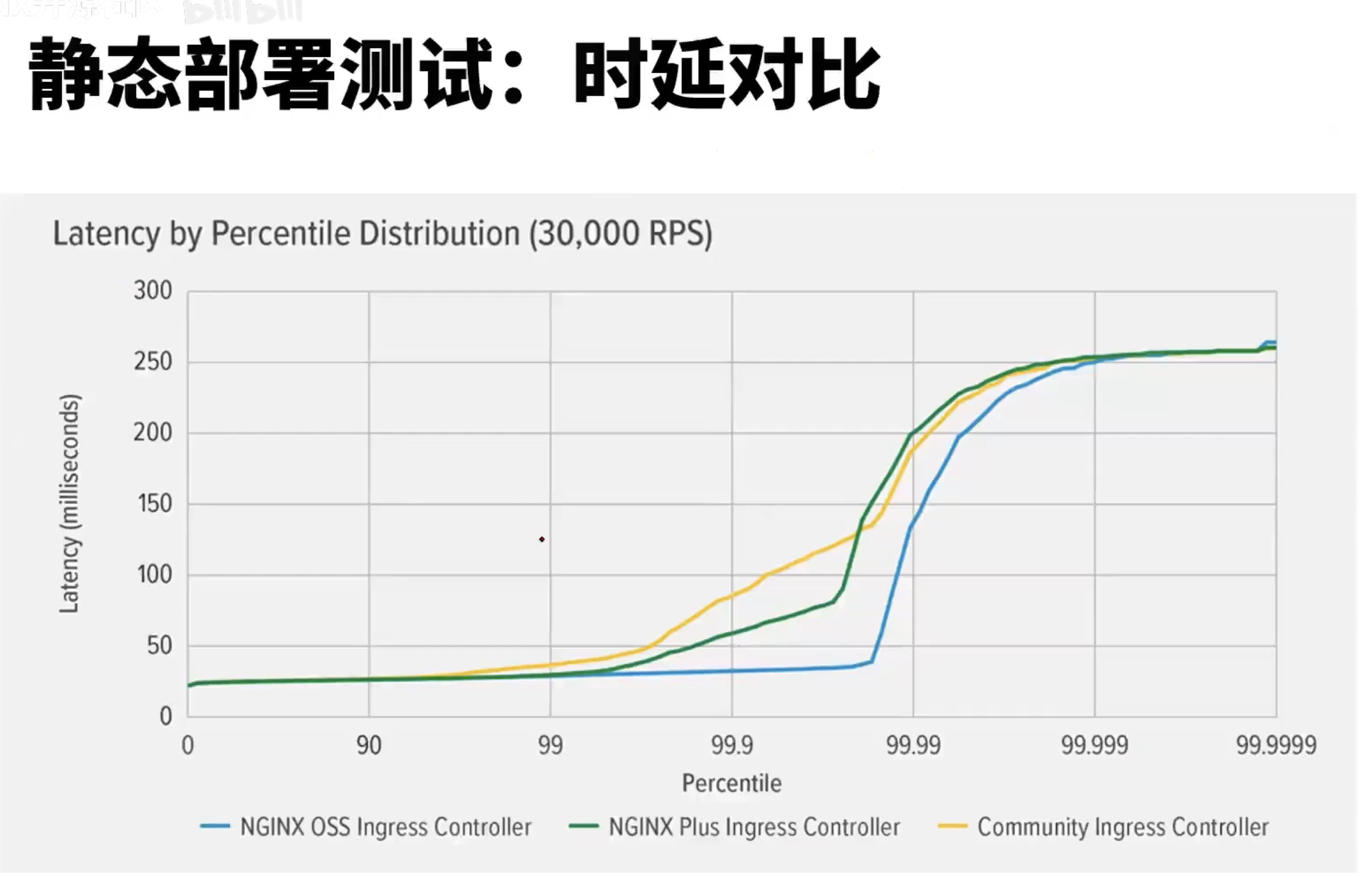到99.9%时,k8s官方提供的ingress时延就变高了,接近100ms (因为lua,有个balance by lua,即从C语言跳到lua)