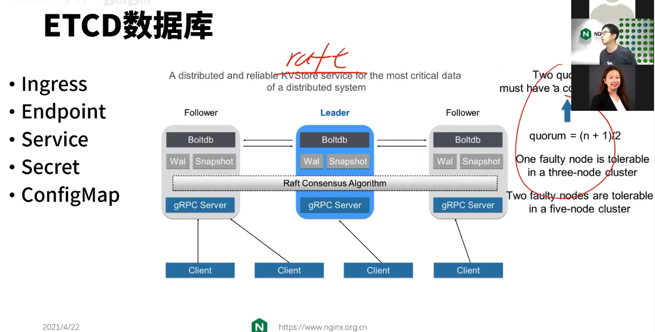 - 数据会不会丢?K8s中的所有数据都会放到etcd中。会通过apiserver提供的grpc,写入到etcd中(etcd提供的现在也是grpc接口)