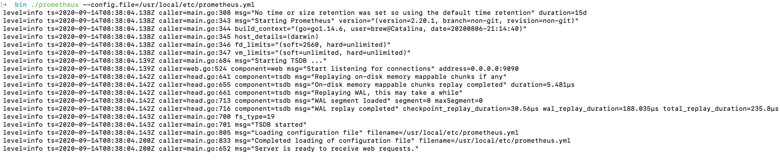 ./prometheus –config.file=/usr/local/etc/prometheus.yml