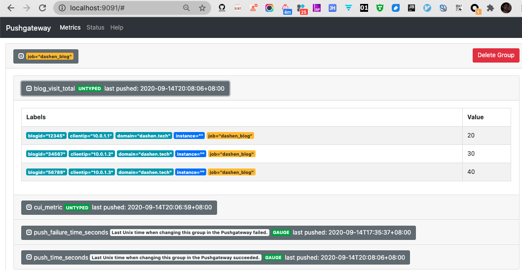 此时http://localhost:9091上, 已能看到刚才push的数据: