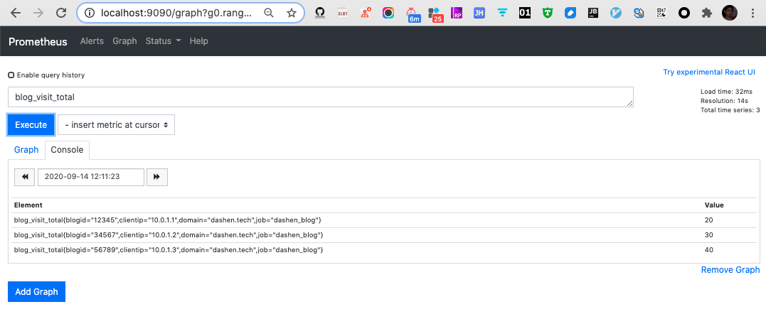 Prometheus本质上是一个时序数据库. curl命令可以多执行几次, 相当于持续向时序数据库中写入数据.