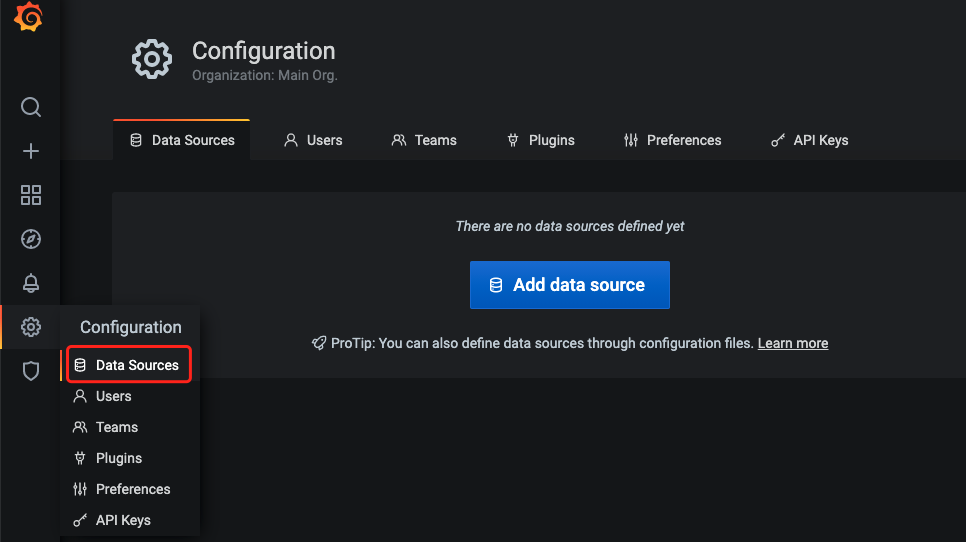 Grafana 是一个单纯的前端图表展示工具, 必须为其添加数据源,才能读取到数据进而进行展示, 参考下图:
