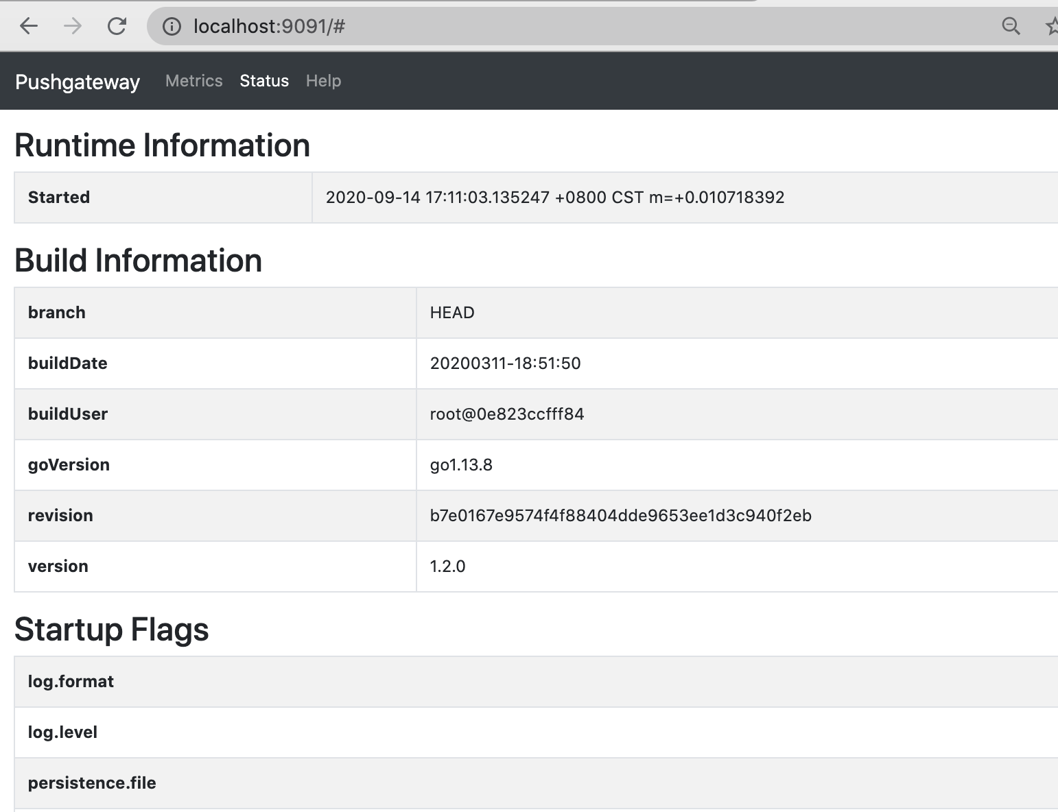 此时, 在localhost:9091/页面Status这个Tab页,可见: