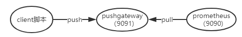 即 客户端(不管是通过代码, 还是直接终端敲命令行) 将数据push到网关(pushgateway), 然后Prometheus从网关pull数据