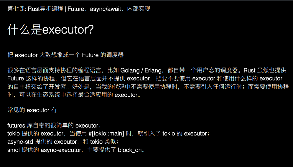 所以async/await目前在很多语言中都是实现异步编程的重要方式。Rust与其他语言的主要区别在于它利用异步函数的不确定性来保证内存安全。