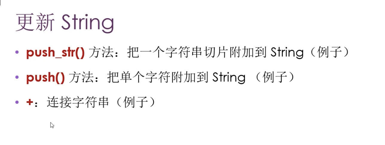 所以从性能角度来说,push_str通常要比+操作符更快,特别是追加大量字符串的时候。