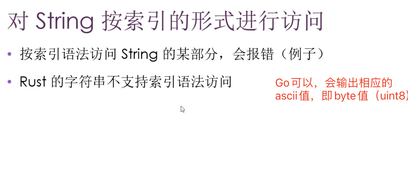 另外Go中的字符串是不可变的,所以没有Rust中的push_str等方法。