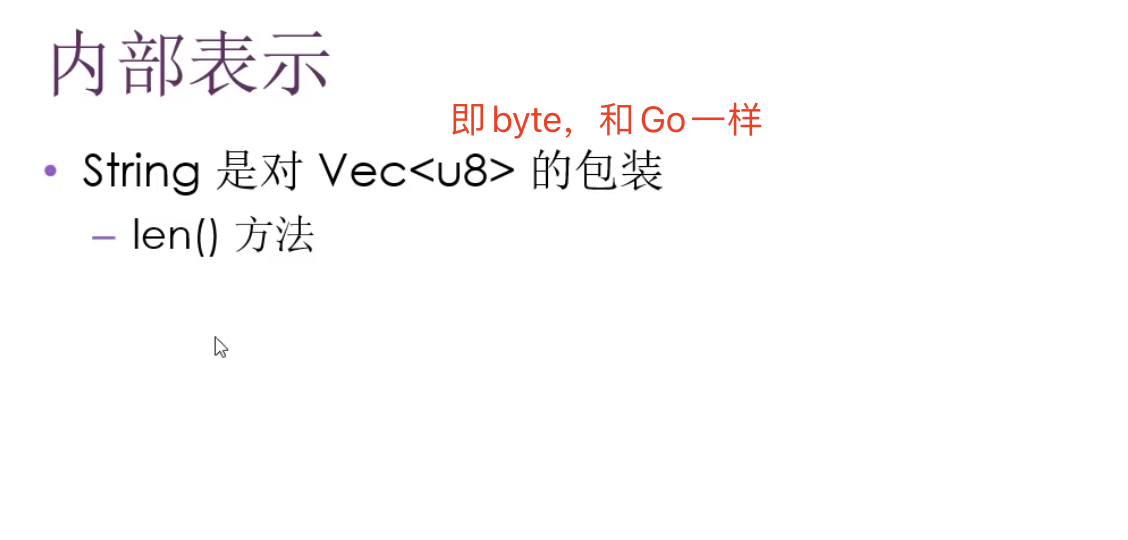 - 是字符串的最基本单位,每个字节代表一个u8的值