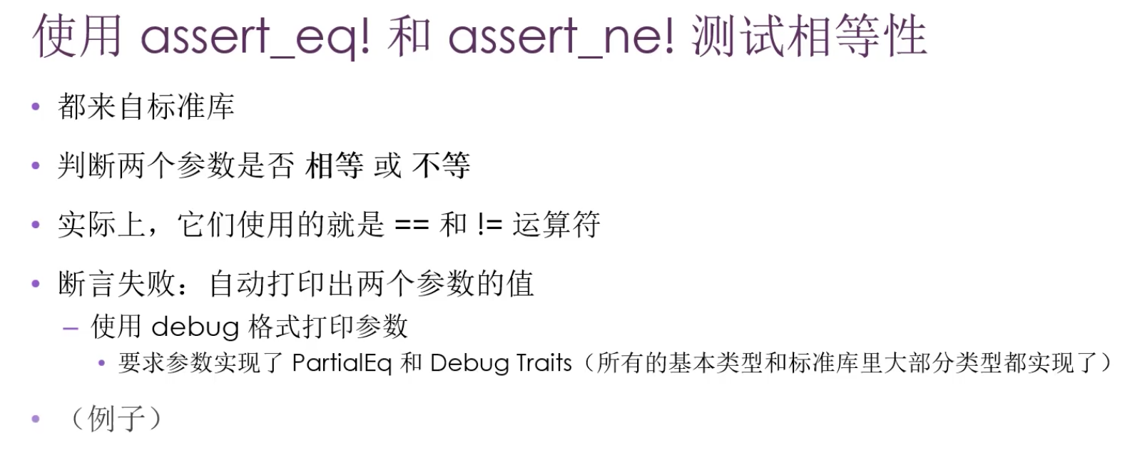 使用assert_eq!宏和assert_ne!宏判断相等性