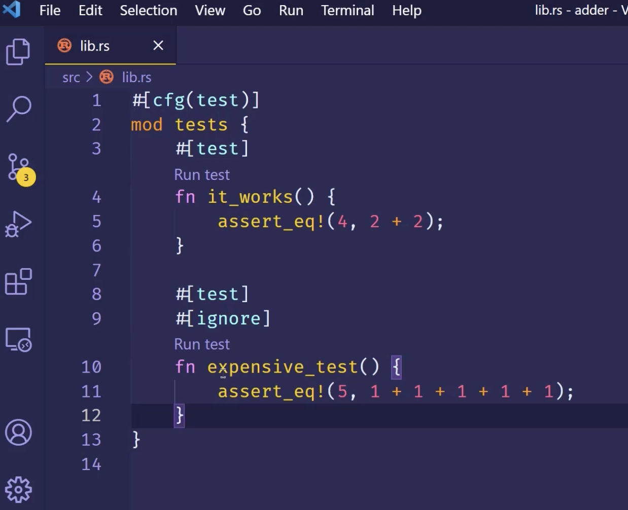 只有在使用cargo test时,才会将有#[test]属性的代码纳入编译范围