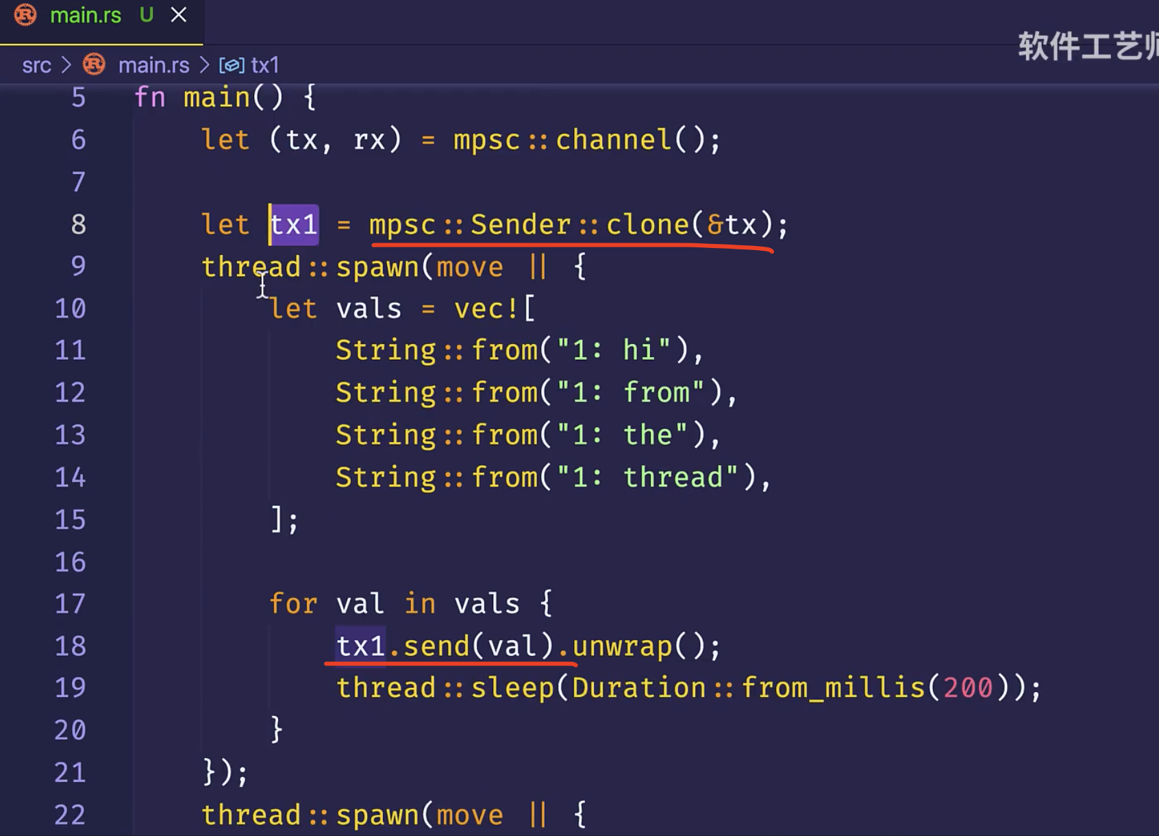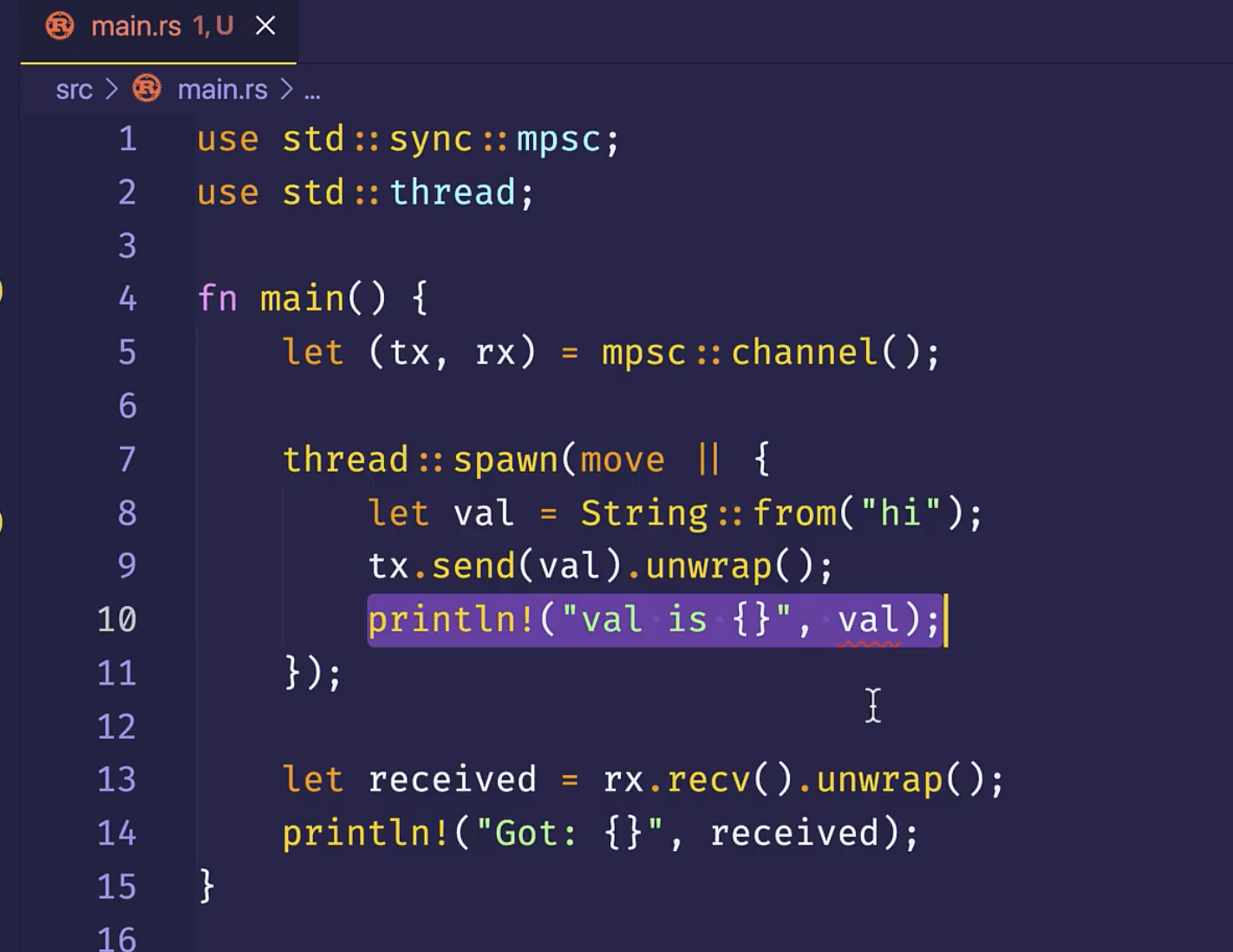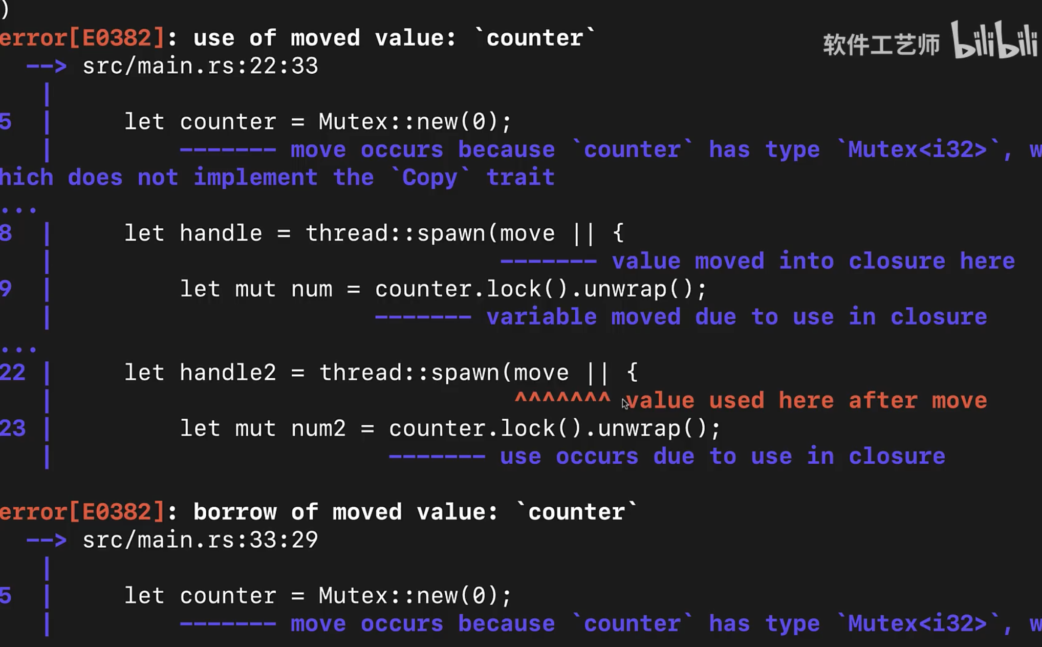 新的线程,必须拥有通道发送端的所有权,才能往通道里发送消息