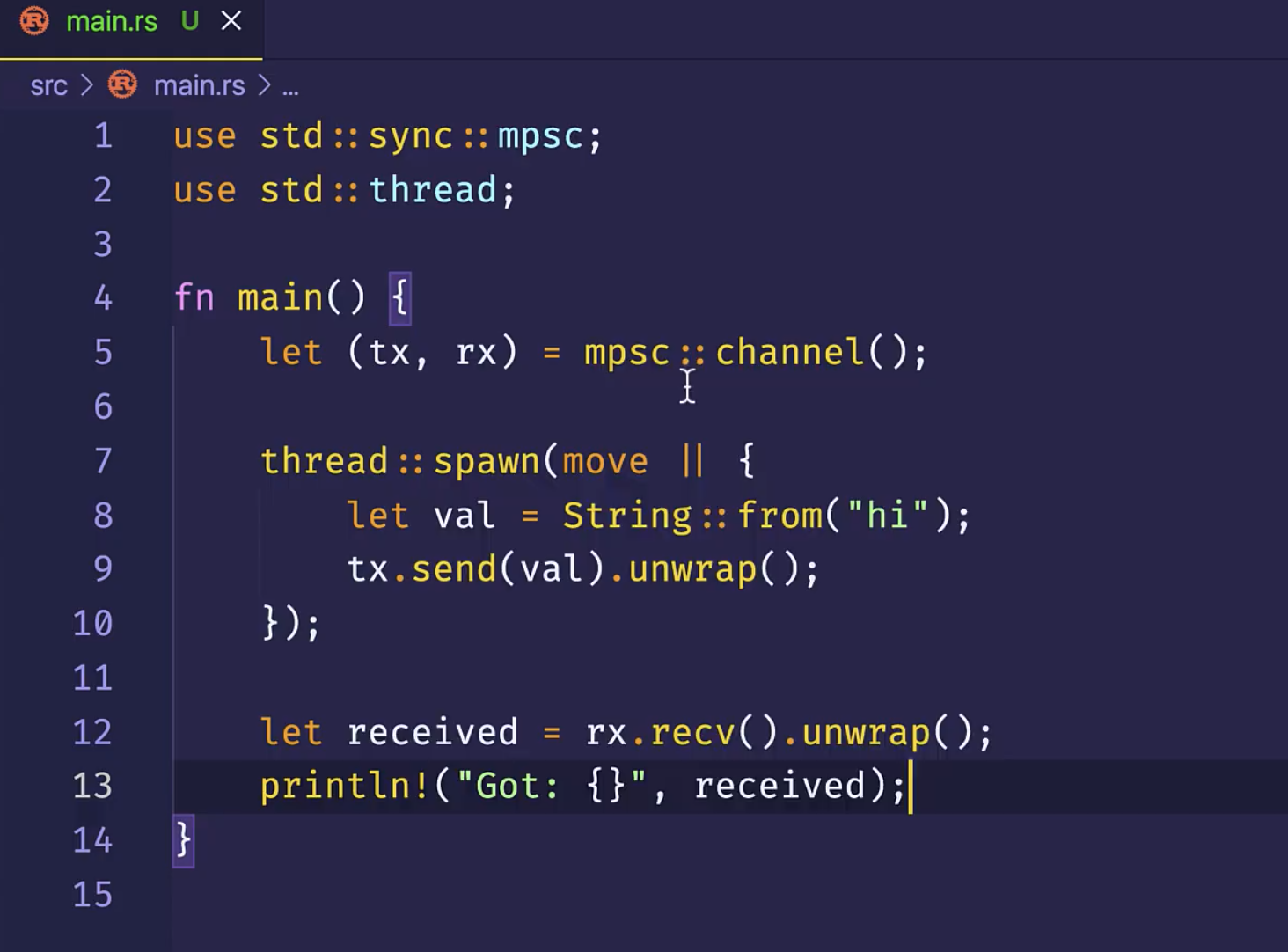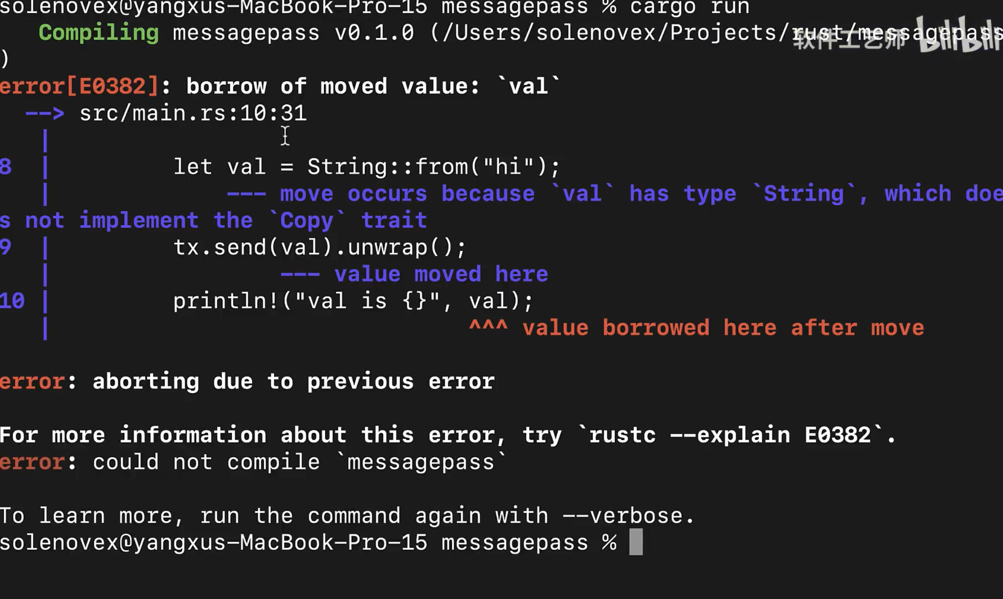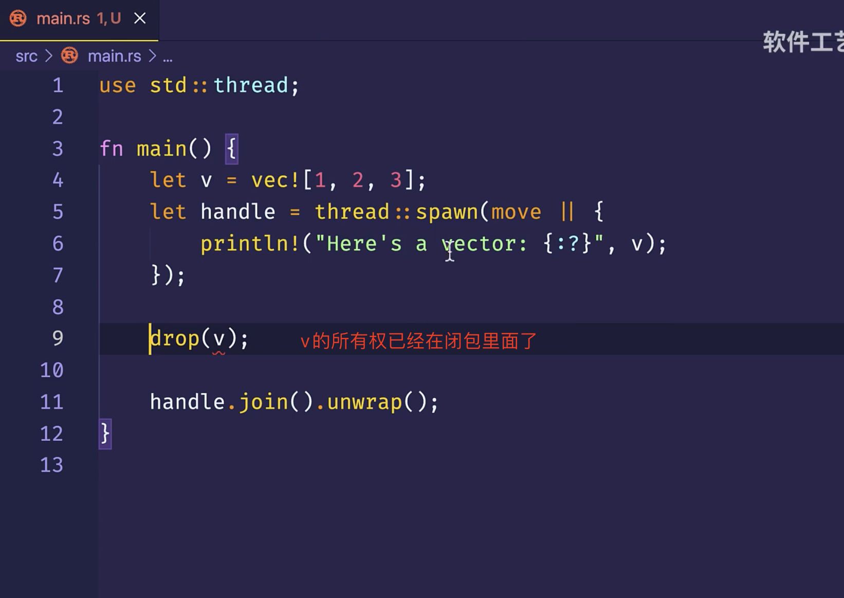 新的线程,必须拥有通道发送端的所有权,才能往通道里发送消息