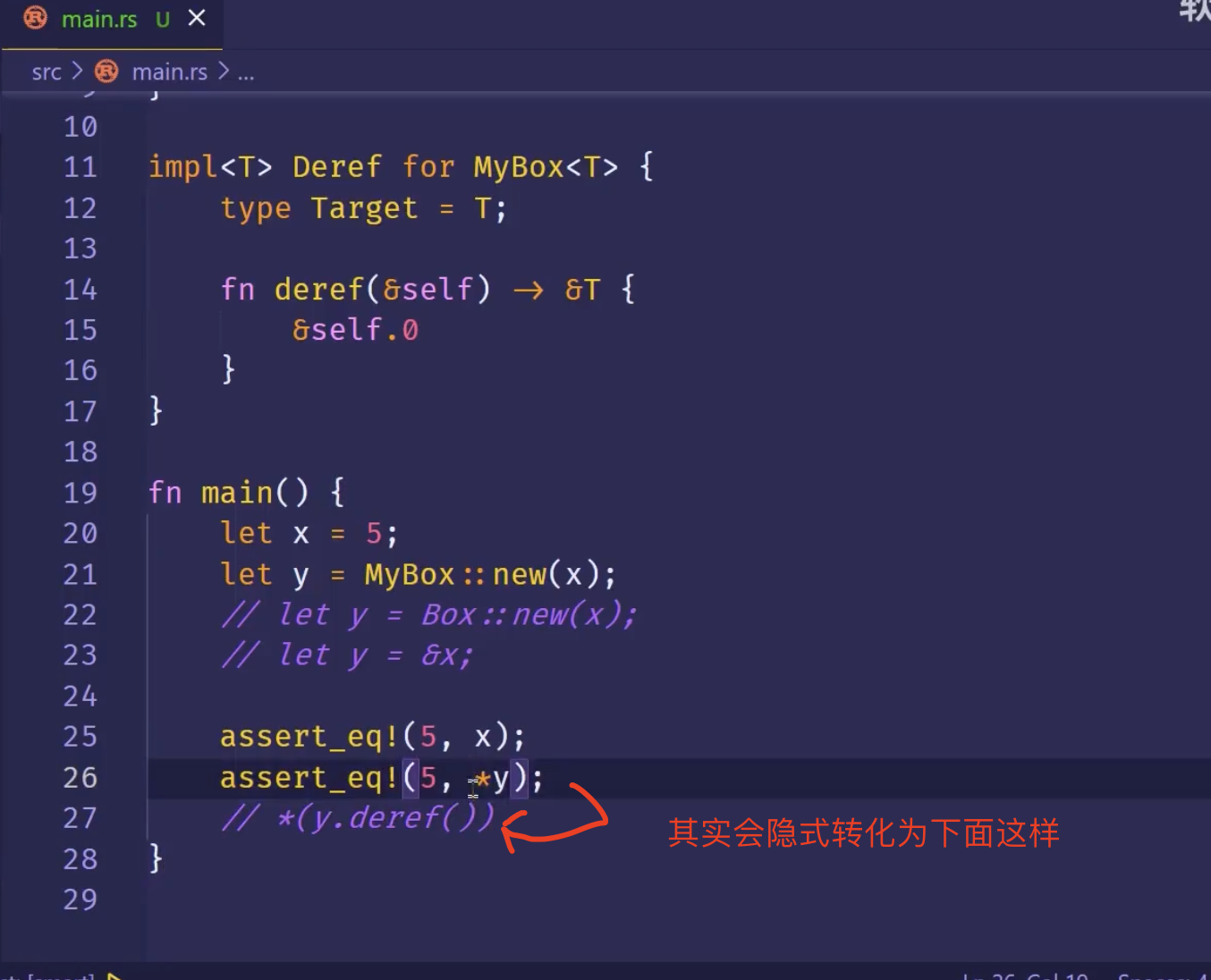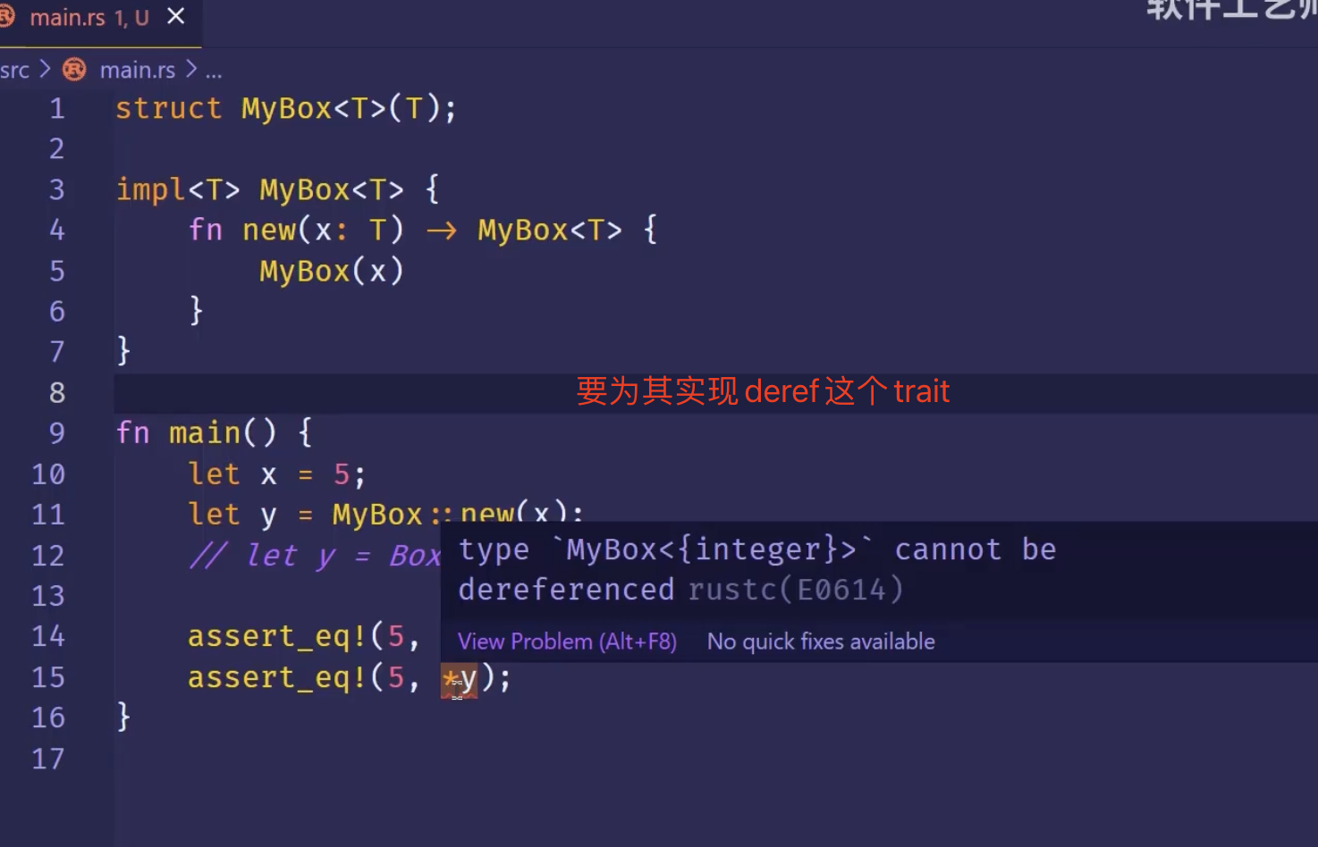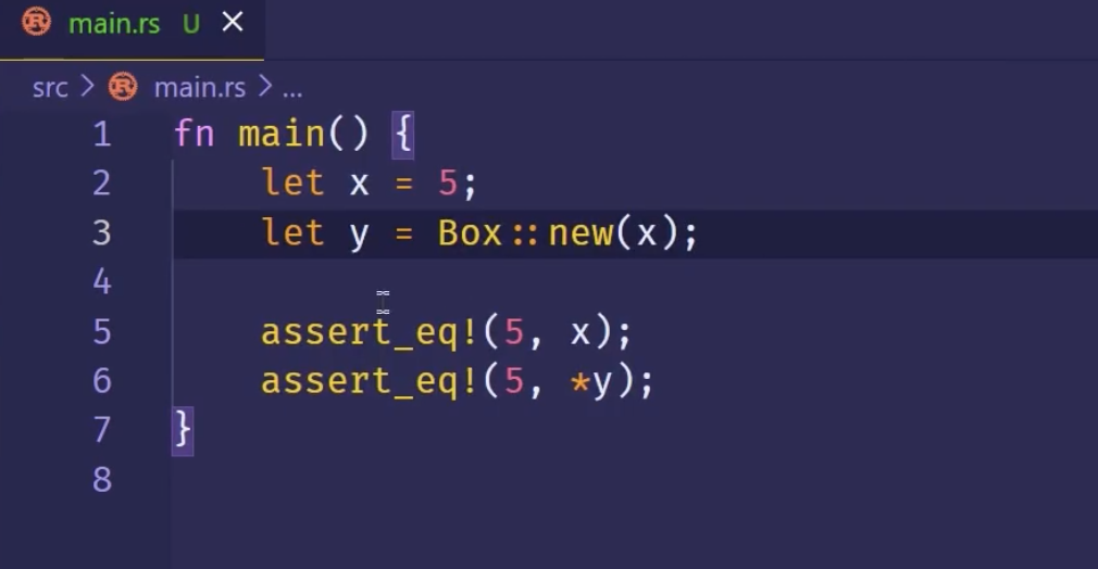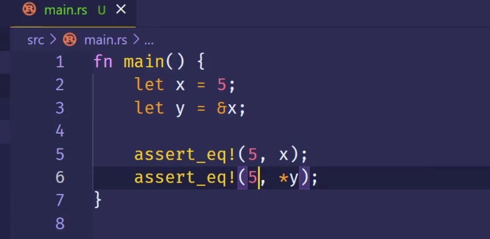 如果不用*y,而直接 assert_eq!(5, y)