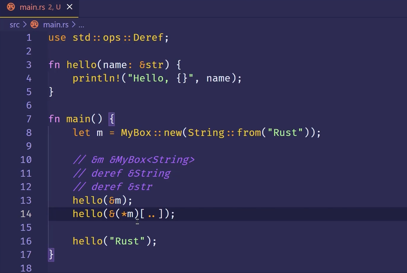 通过实现Deref trait来将类型视作引用