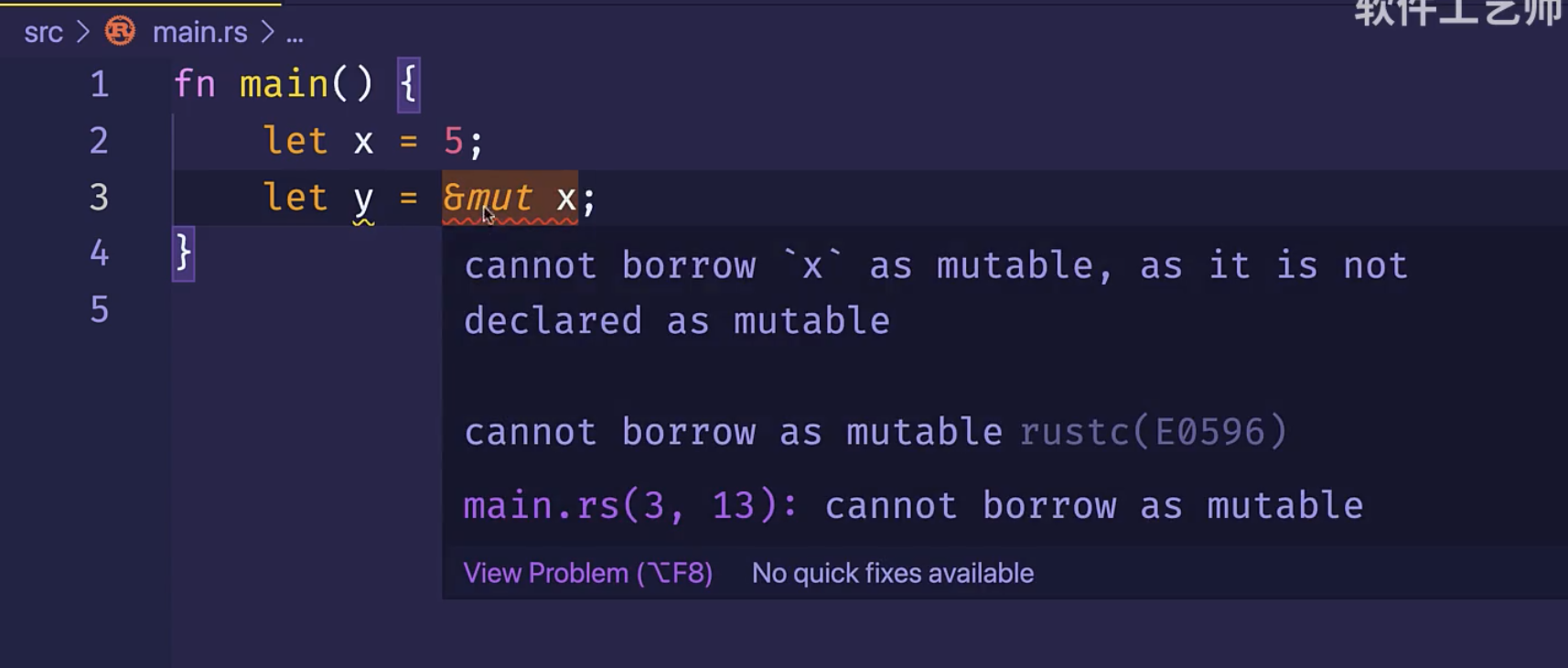 你无法可变地借用一个不可变的值