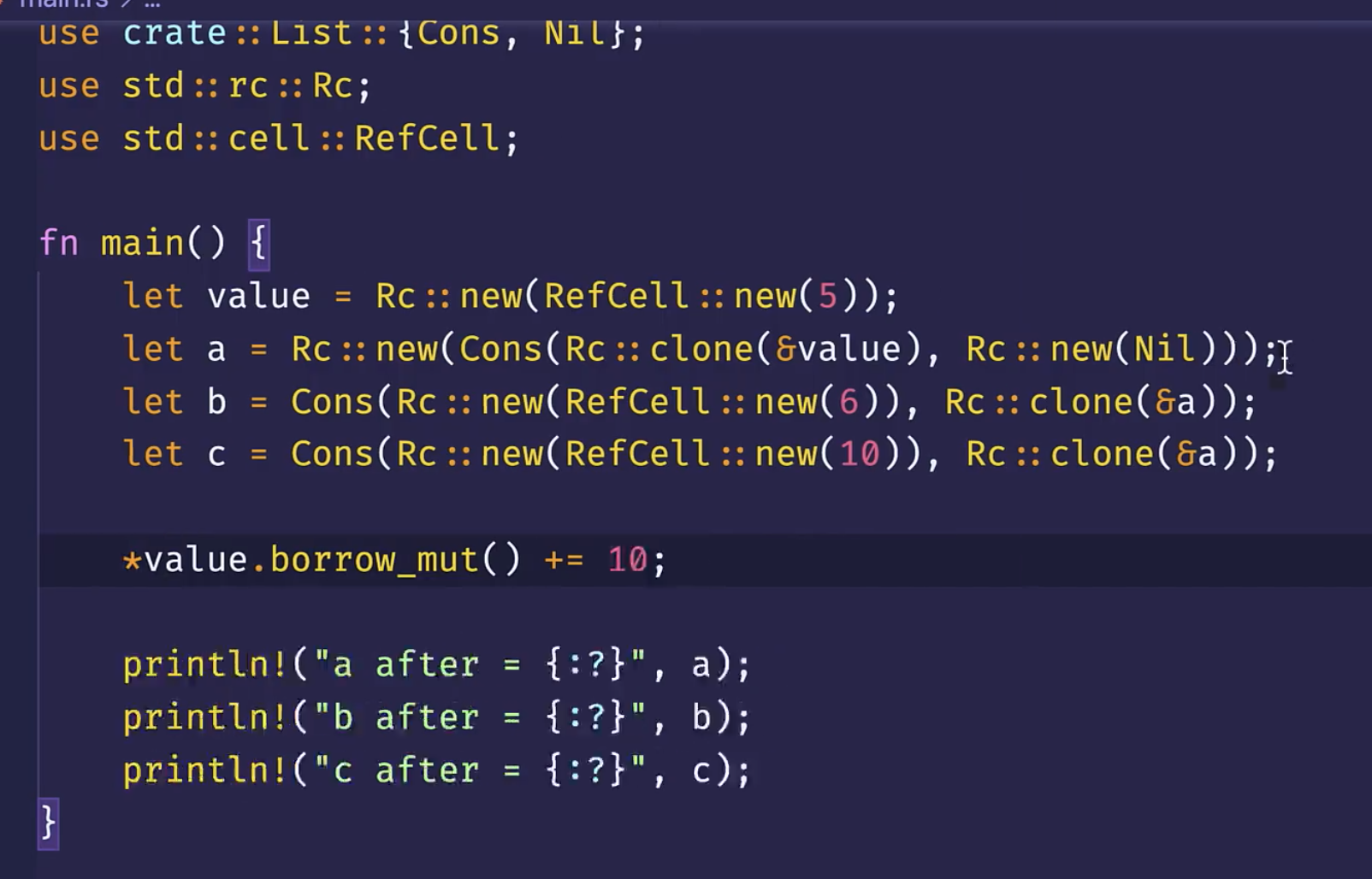 将Rc和RefCell结合使用来实现一个拥有多重所有权的可变数据