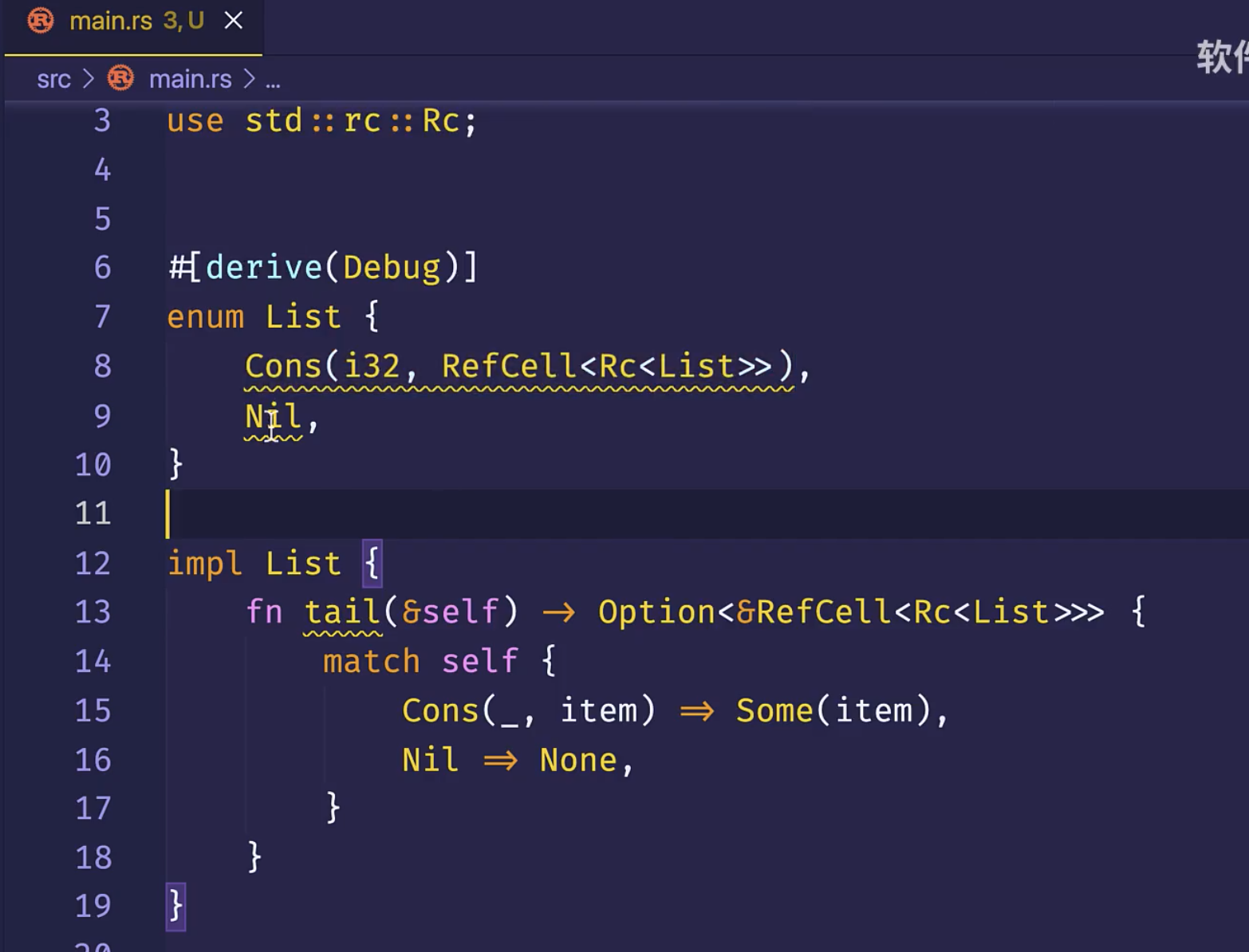 如果在Rc中存储RefCell,那么就可以定义出拥有多个所有则,且能够进行修改的值。