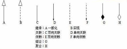 关联关系(Association): 单向关联用一个带箭头的实线表示,箭头从使用类指向被关联的类; 双向关联用带箭头或者没有箭头的实线来表示