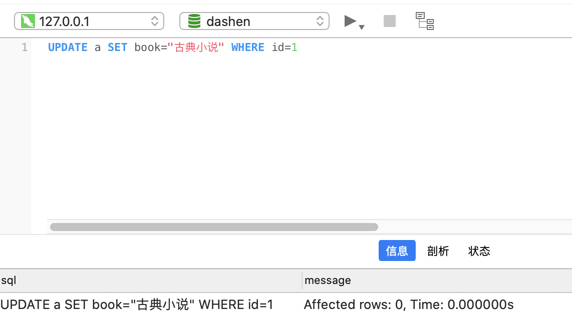 update一条不存在的记录,Affected rows为0,但并不会报错