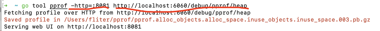 http://localhost:6060/debug/pprof/heap 是指定获取profile文件的地址。本地在实时运行的程序可以用这种方式,更多情况下(如在服务器上,没有对外开放用于pprof的端口),可以先去机器上,用curl http://127.0.0.1:6060/debug/pprof/heap -o heap_cui.out拿到profile文件,再想办法弄到本地,使用go tool pprof --http :9091 heap_cui.out进行分析