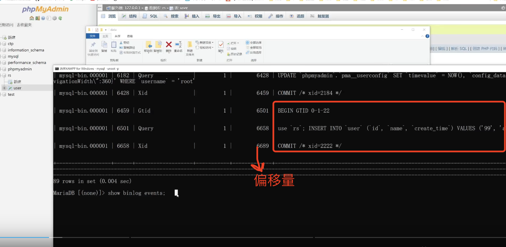 执行写操作后,通过 show binlog events;可以看到