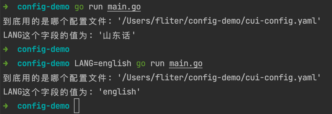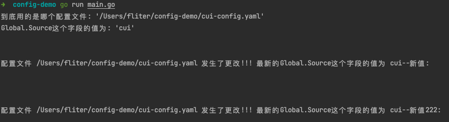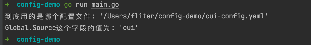 1 2 到底用的是哪个配置文件: '/Users/fliter/config-demo/cui-config.yaml' Global.Source这个字段的值为: '优先级最高'