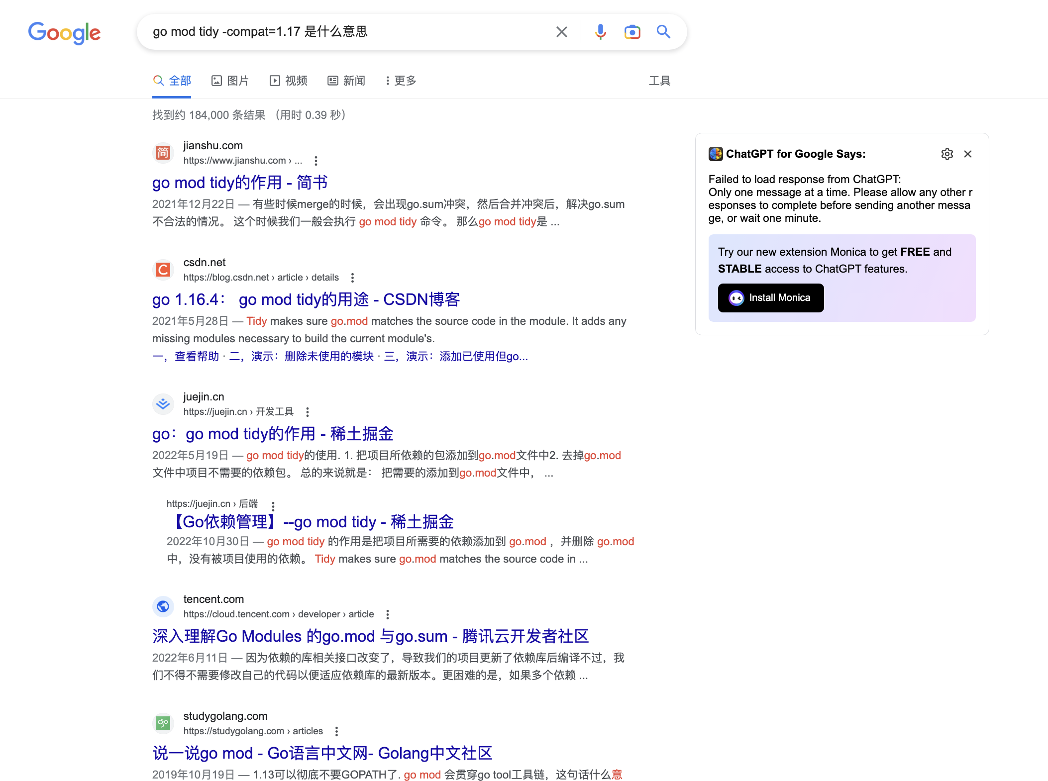 go mod tidy -compat=1.17 是一个 Go 命令,用于调整 go.mod 文件的内容,以确保它准确反映了一个 Go 模块的依赖关系。默认情况下,该命令将使用每个依赖项的最新兼容版本。