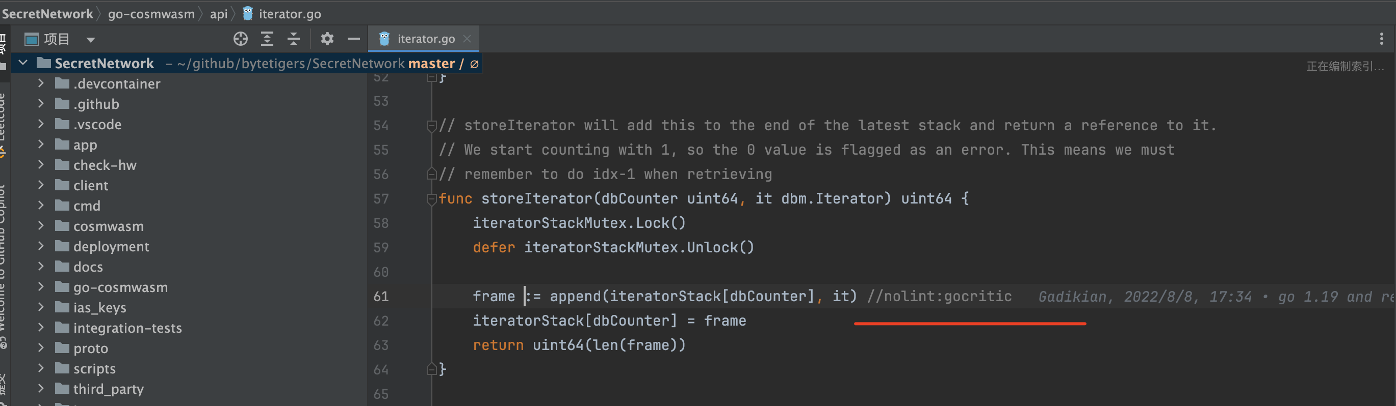 这个禁用gocritic检测的标记好像没起作用啊,还是: