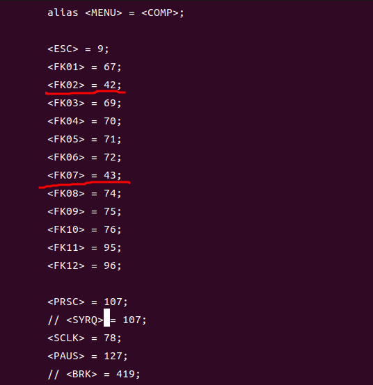 sudo vim /usr/share/X11/xkb/keycodes/evdev