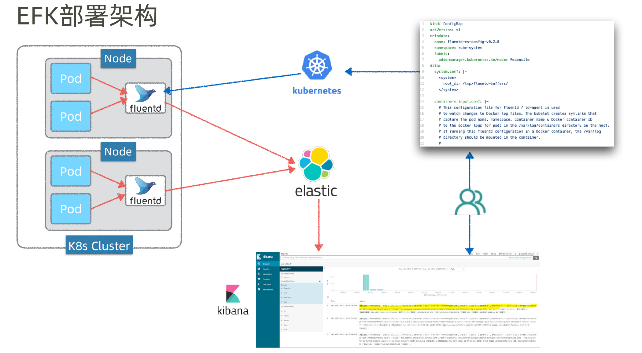 另外还有ELK,即用logstash来替代github.com/fluent/fluentd 来做 日志的收集、过滤和转换