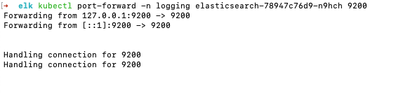 kubectl port-forward -n logging elasticsearch-78947c76d9-n9hch 9200 (为验证是不是操作问题,delete了ns,重新apply了一下,pod名称可能和前面的对不上)