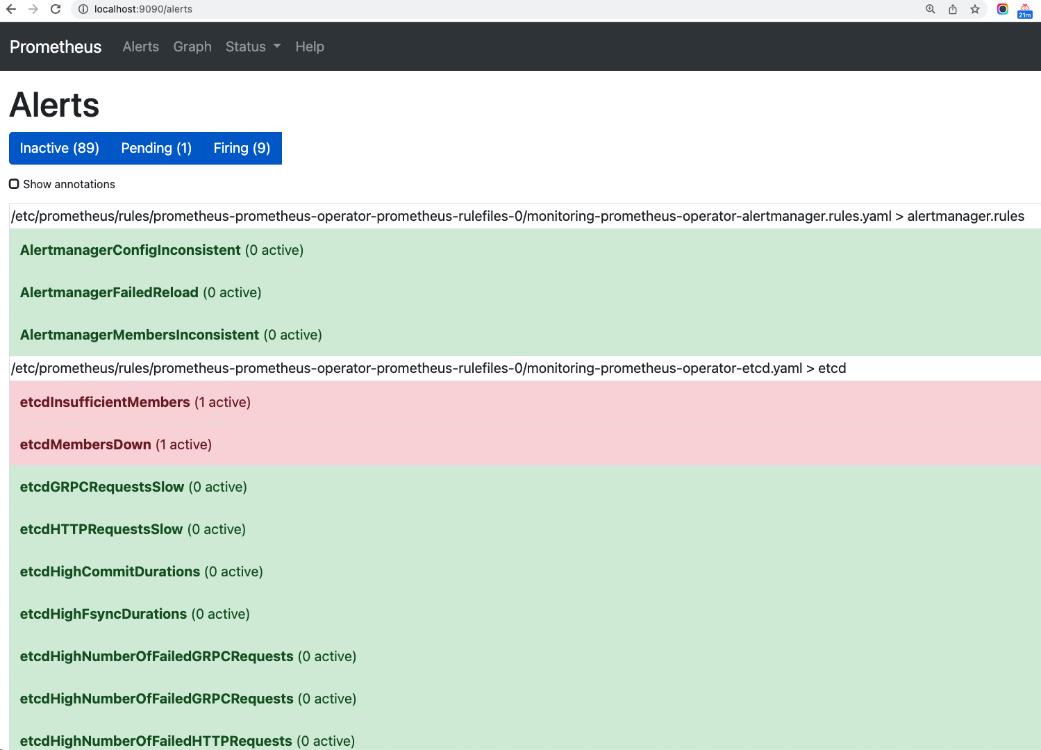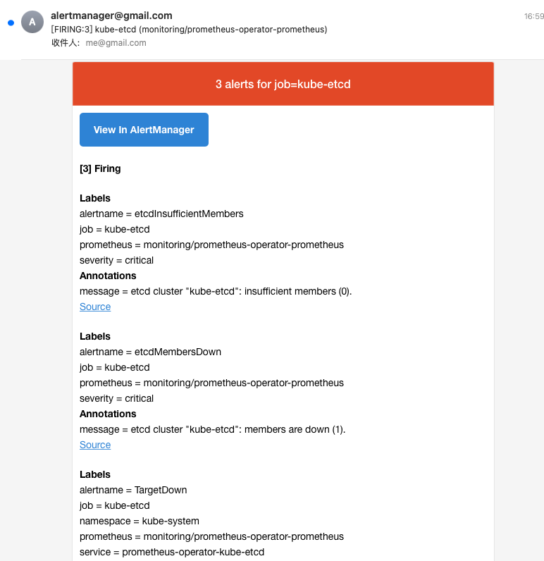 其中 etcd这项告警 message = etcd cluster "kube-etcd": members are down (1).是因为用minikube,etcd节点本来就不足~