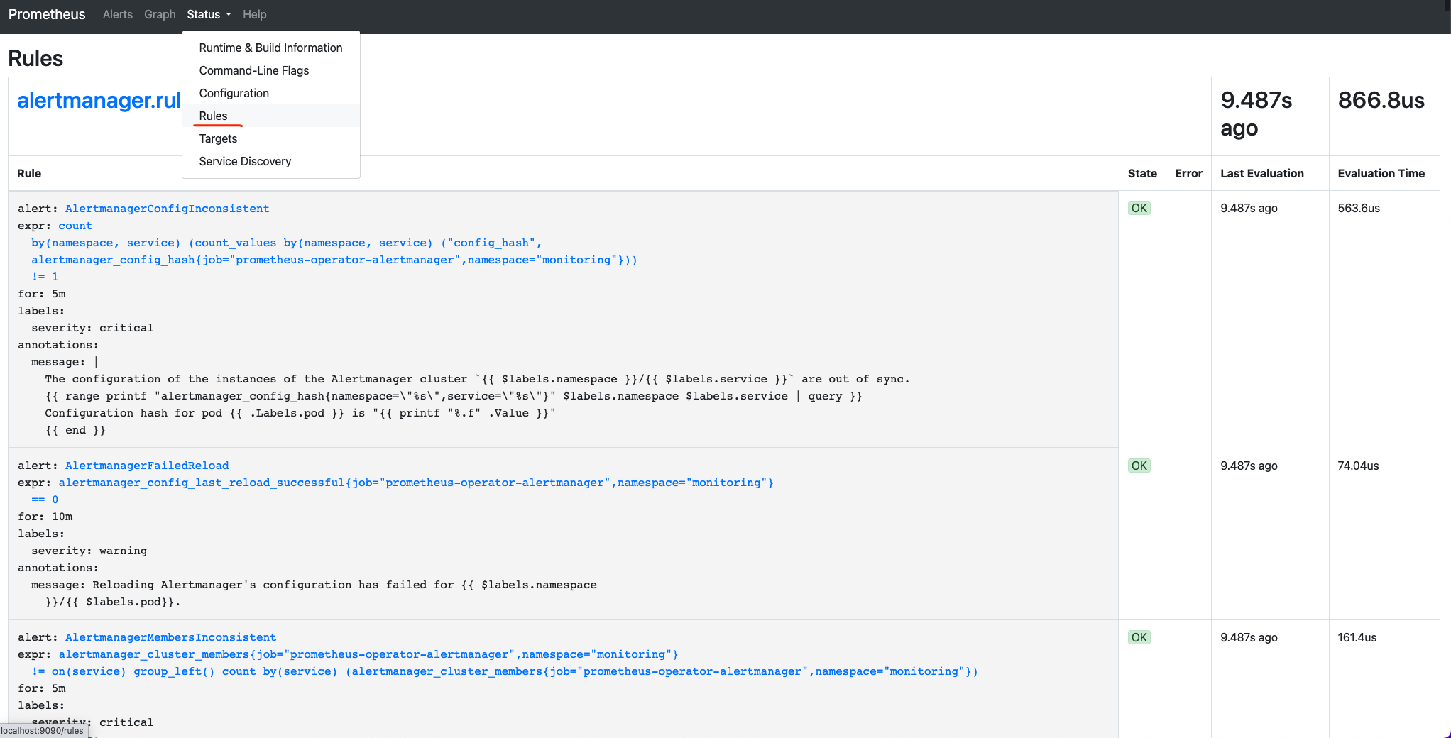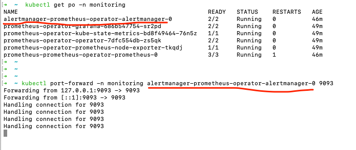 kubectl port-forward -n monitoring alertmanager-prometheus-operator-alertmanager-0 9093