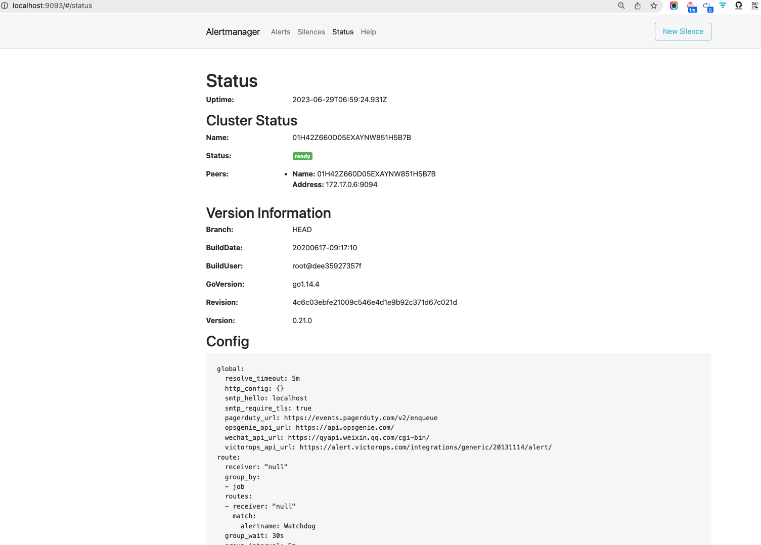 Alertmanager缺省配置(UI)