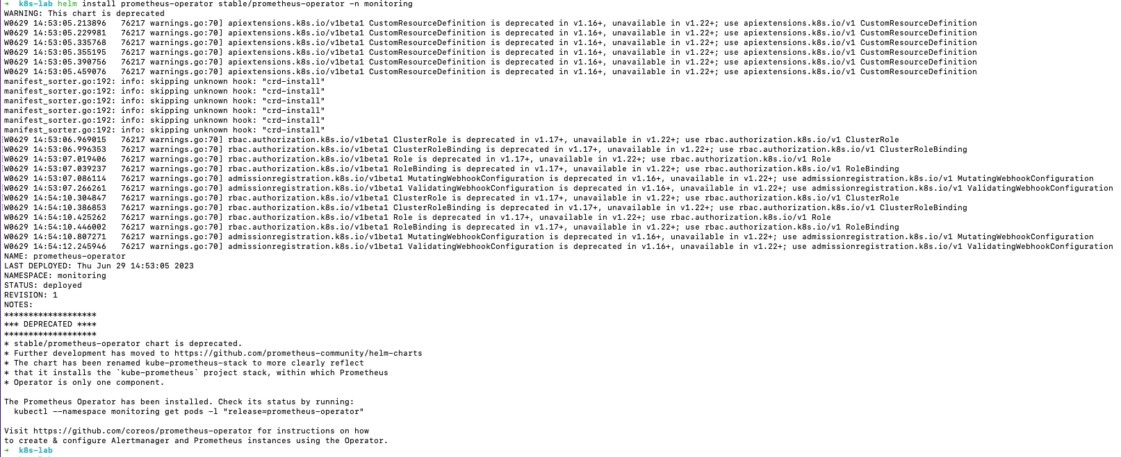 helm install prometheus-operator stable/prometheus-operator -n monitoring