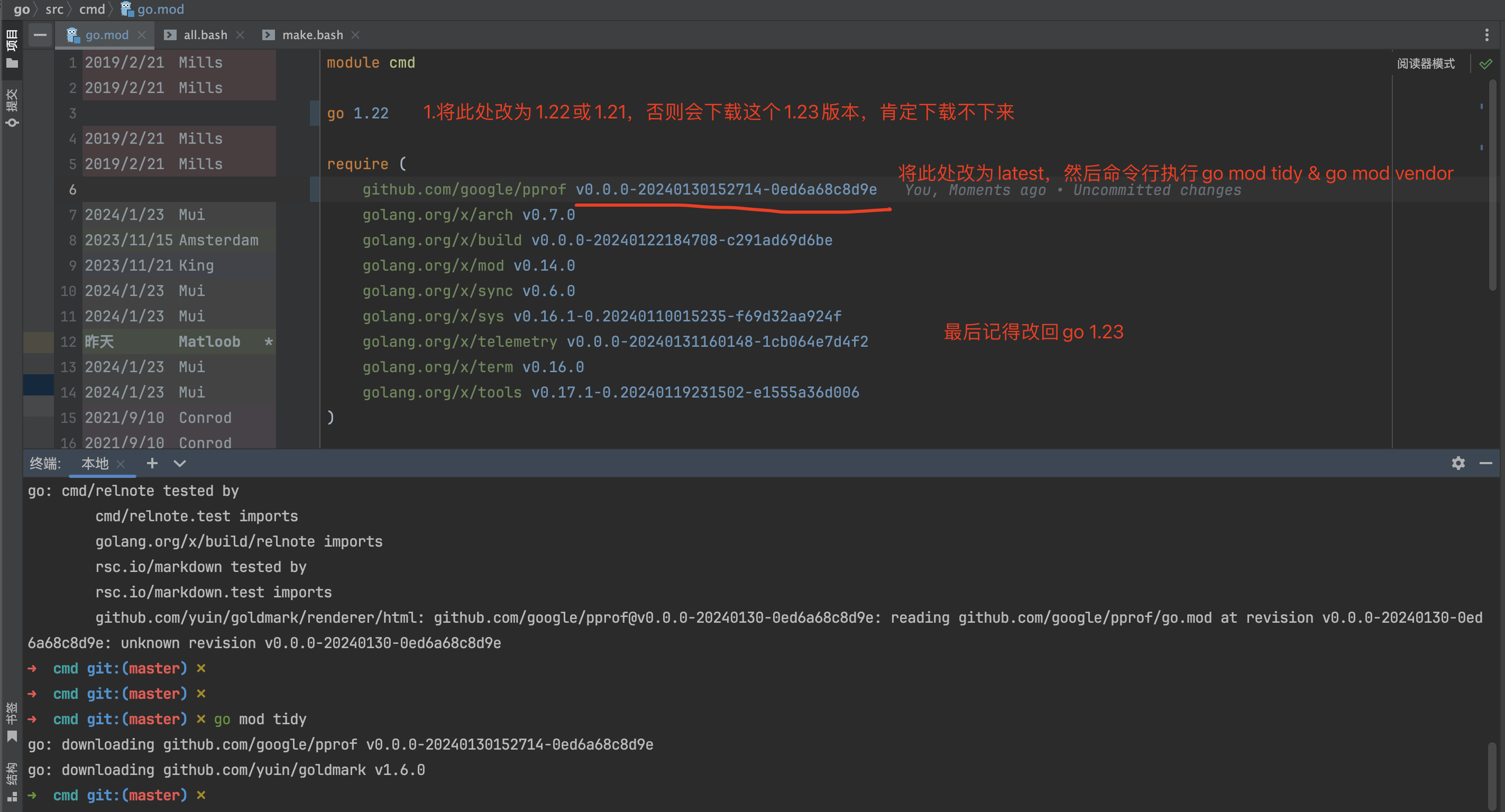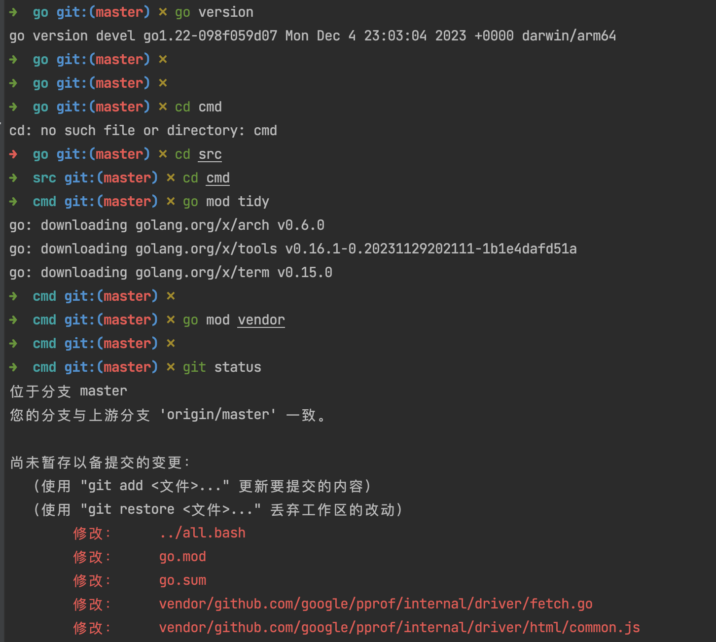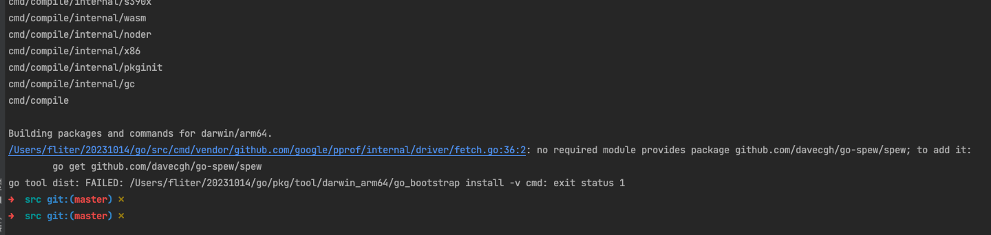 报错信息可能因go的版本而有所不同。上图go的版本是go version go1.21.0 darwin/arm64