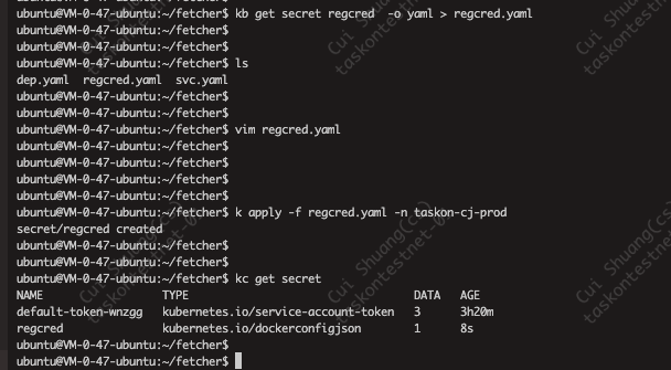 1 | kubectl get secret regcred -n taskon -o yaml > regcred.yaml |
