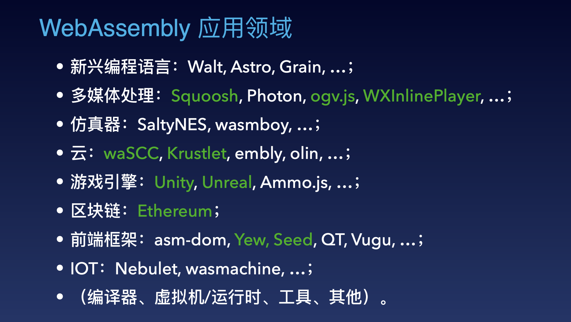 Cranelift 最初是为 WebAssembly 和其他低级语言的高性能即时编译用途而开发的。它的设计重点是快速编译速度,使其适合用作 WebAssembly 运行时的编译器,如 WebAssembly Micro Runtime (WAMR) 或其他系统中的 JIT 编译器。