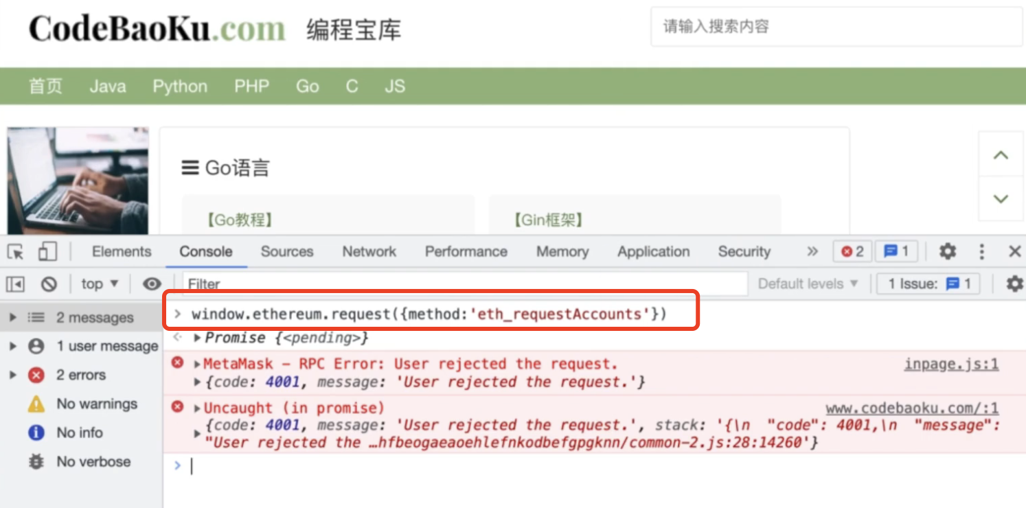 在chrome控制台中输入上面的语句,就会打开小狐狸钱包(如果在空白页是不会生效的)
