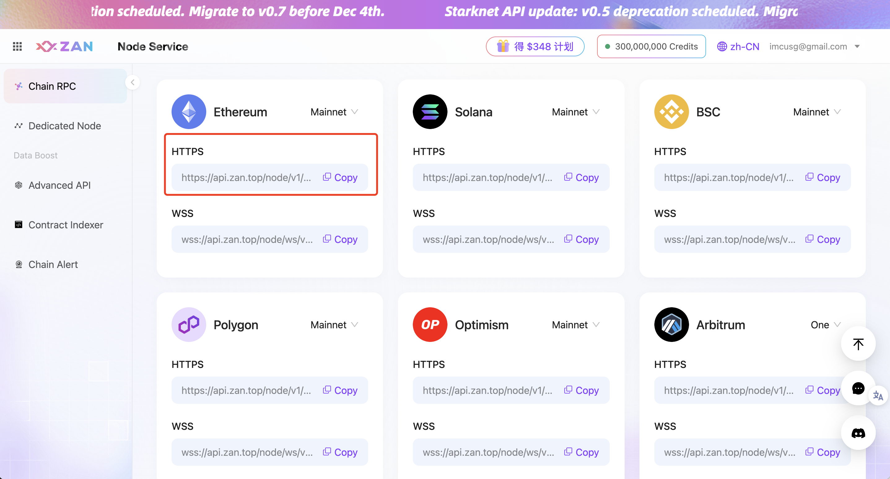 可以在https://zan.top/service/apikeys/2c33d502-7158-4e79-922f-b0d98e9a8dbb/started 创建