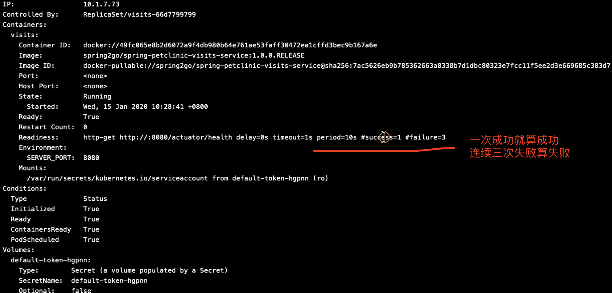 | Liveness: http-get http://:80/healthz delay=5s timeout=1s period=10s #success=1 #failure=3 Readiness: http-get http://:80/healthz delay=5s timeout=1s period=10s #success=1 #failure=3