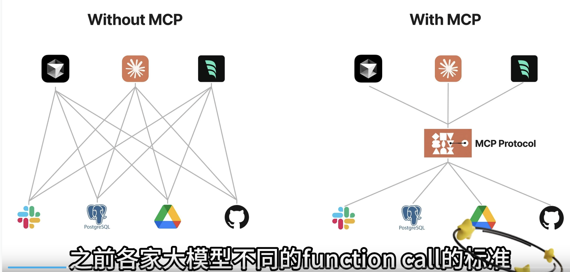 7分钟讲清楚MCP是什么?统一Function calling规范,工作量锐减至1/6,人人手搓Manus!? | 一键链接千台服务器,几行代码接入海量外部工具